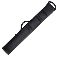 Heavy duty nylon hard polyform 3 butt/4 shaft pool cue case with large jump cue pocket, medium and small accessories pocket, zip closure, heavy-duty reinforced bottom, padded handle and carrying strap. Size 3B/4S Color: Black Heavy Duty Nylon Style: Silk Sleeve Adjustable padded shoulder strap with clip fasteners Reinforced bottom and handles Small, medium and large accessory/ jump cue pockets Silk Sleeve case.