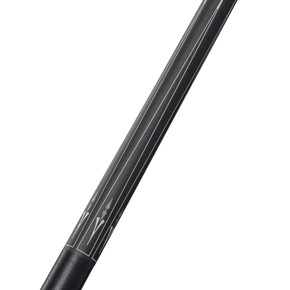 This cue offers a sophisticated look with its matte black finish accented by elegant mother-of-pearl design. The MZ Grip technology wrap ensures a secure grip for accurate shot execution. The upgraded 11.75mm Pure X HXT Low Deflection Technology Slim Shaft provides exceptional control, while the Kamui Black Soft Tip delivers a soft feel for optimal feedback. Backed by a lifetime guarantee against warpage, this cue is built for both style and performance.