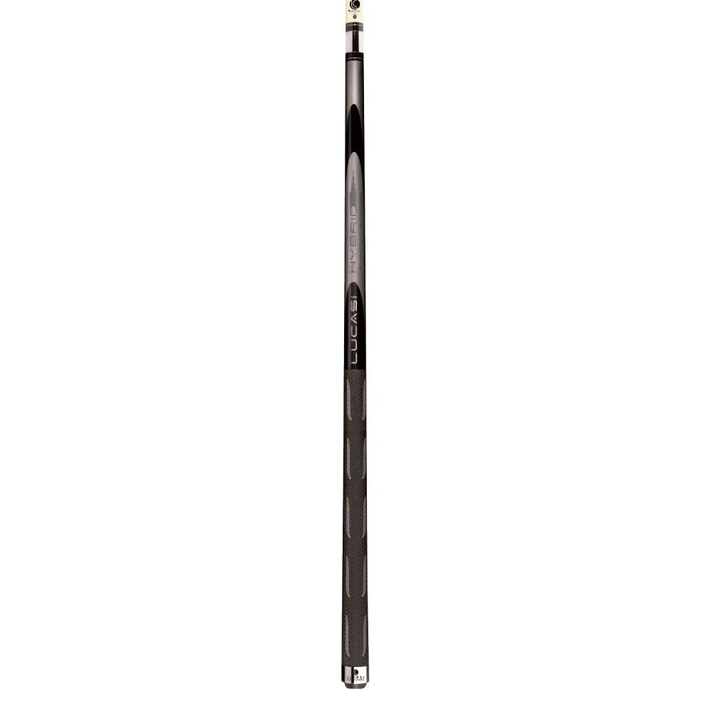 This Lucasi cue features a Golf-style sporty design in Black Mist and metallic silver, stainless steel butt cap and Quick-Release Uni-Loc joint. Technology shaft upgrade available.